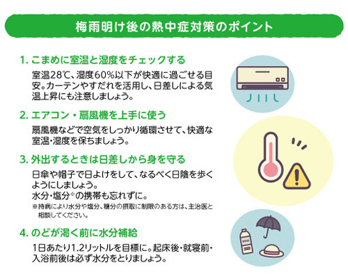 梅雨明け前の「暑熱順化」と梅雨明け後の「暑さ対策」で、熱中症を寄せつけない夏を過ごしましょう!