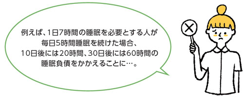 「朝なかなか起きられない」「通勤・通学途中の電車でうたた寝」「休日は寝だめ」というあなた。睡眠負債がたまっているかもしれません。睡眠負債とは、日々の睡眠不足が借金のように積み重なること。睡眠負債がたまり続けると、生活習慣病やうつ病などの健康リスクが高まるといわれています。なぜ睡眠不足がよくないのか、寝だめの是非、睡眠負債をなくすための12の指針など、快適な睡眠につながるヒントをご紹介します。