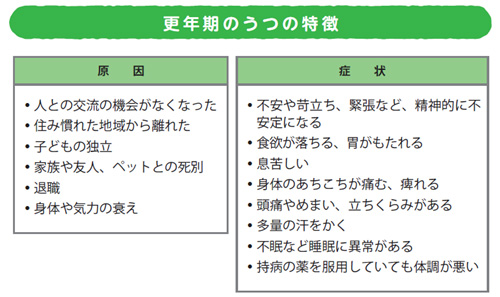 昨今は年代・性別を問わずうつになる人が増えています。中でも高齢者は、加齢に伴う心身機能の低下に加え、仕事や社会的な役割が小さくなることからくる不安感、肉親や配偶者、友人との死別など喪失感を抱くことが増えることなどから、うつを発症しやすい年代といえます。